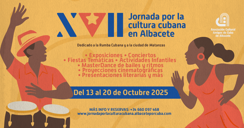 Durante esta semana se desarrollará un variado programa de actividades en diferentes espacios socioculturales de Albacete, que incluirá presentaciones de música, danza, literatura, cine, exposiciones y encuentros comunitarios, donde artistas cubanos y amigos de la cultura de la isla compartirán su talento y experiencias.